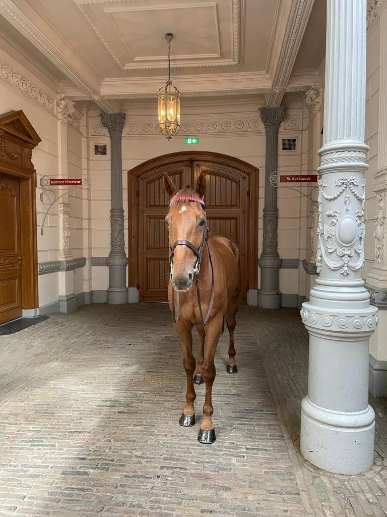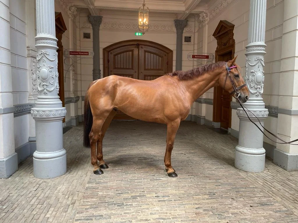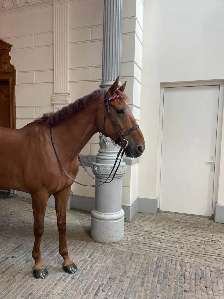 Zijn stalnaam is Cathal en het is een heerlijk Iers paard. In Ierland is er van alles met hem gedaan; hij heeft gejaagd, gesprongen, er zijn buitenritten met hem gemaakt en hij heeft aan eventing-wedstrijden meegedaan. In Nederland hebben we hierop voortgeborduurd. Hij loopt inmiddels keurig L2, springt B en heeft in Nederland zijn eerste eventing wedstrijd (L) gelopen, hierbij was hij foutloos in het springen en in de cross. Cathal knows his job, zoals het gezegde klinkt. Hij is ontzettend betrouwbaar en erg werkwillig, hij is lief en kent alles. In de ring weet hij dat hij zijn beste hoefje voor moet zetten, met springen wil hij foutloos blijven en met crossen weet hij ook dat hij de hindernissen moet opzoeken en tussen de hindernissen hard mag gaan. Toch luistert Cathal altijd goed naar zijn baasje, hier zie je zijn werkwilligheid terug. Het is een ontzettende knuffelkont thuis. Hij staat altijd los op de poetsplaats en houdt van knuffels en poetsen.